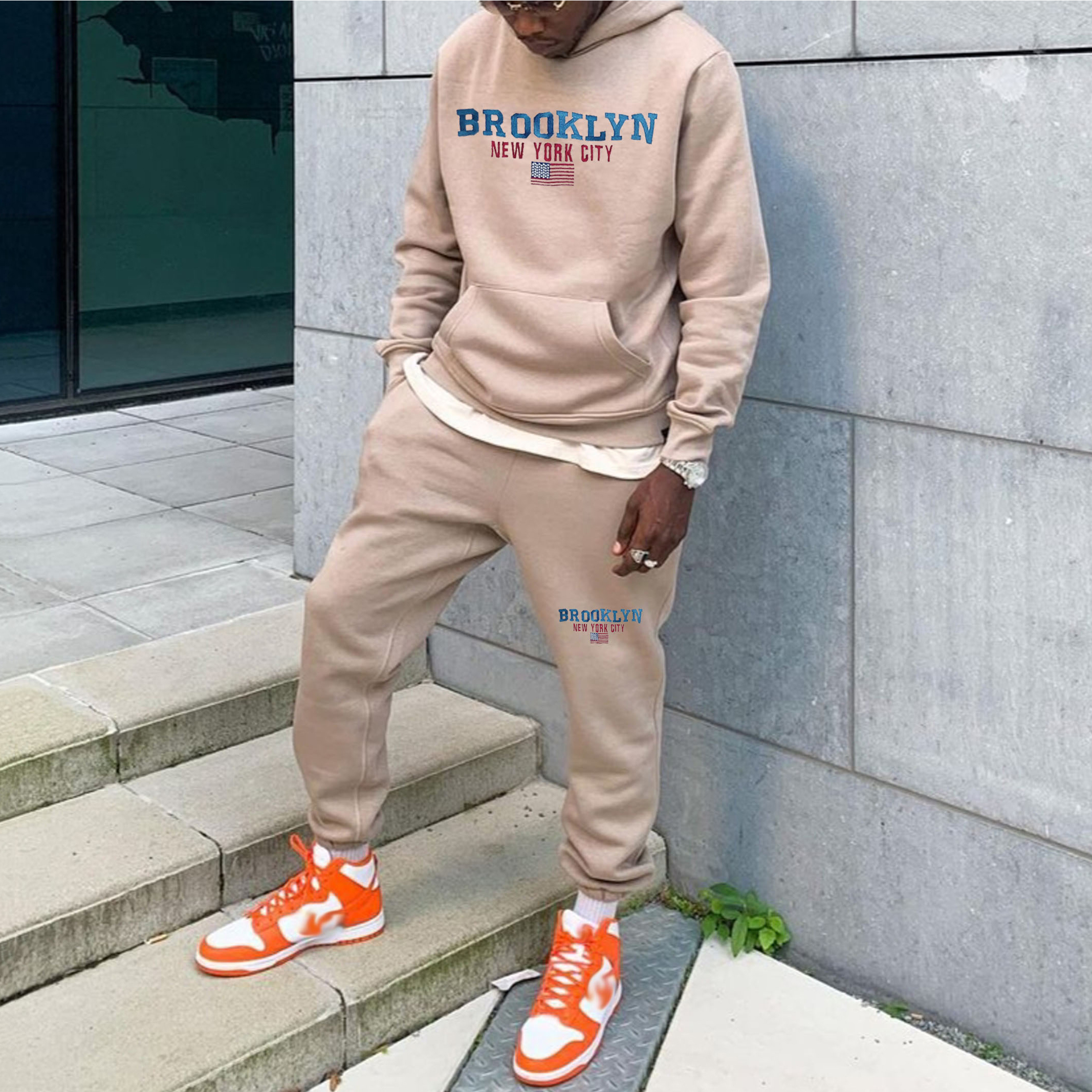 Casual Brooklyn Print Hoodie And Pants Two Piece Set