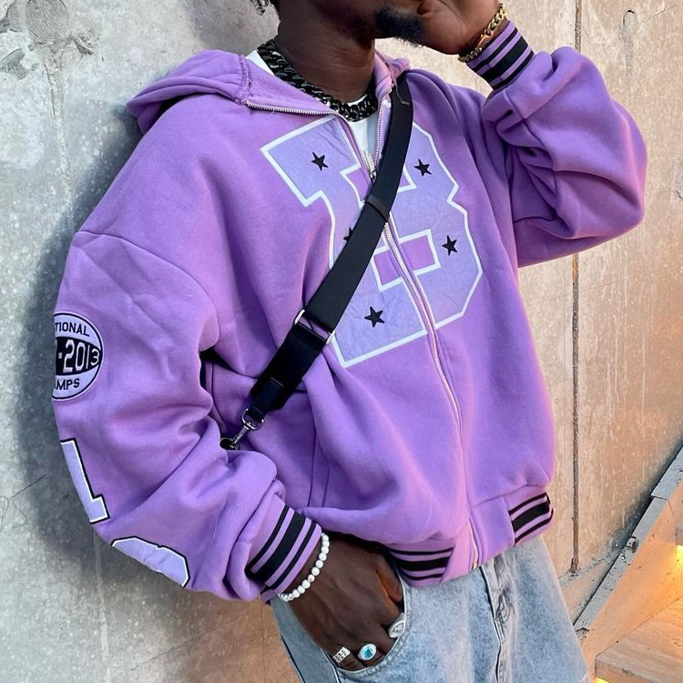 Casual Letter Print Zip Hoodie
