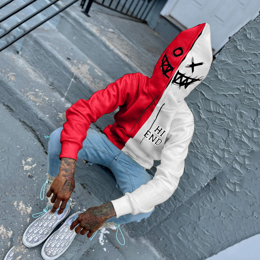 Contrast Color Trend Design Print Long Sleeve Hoodie