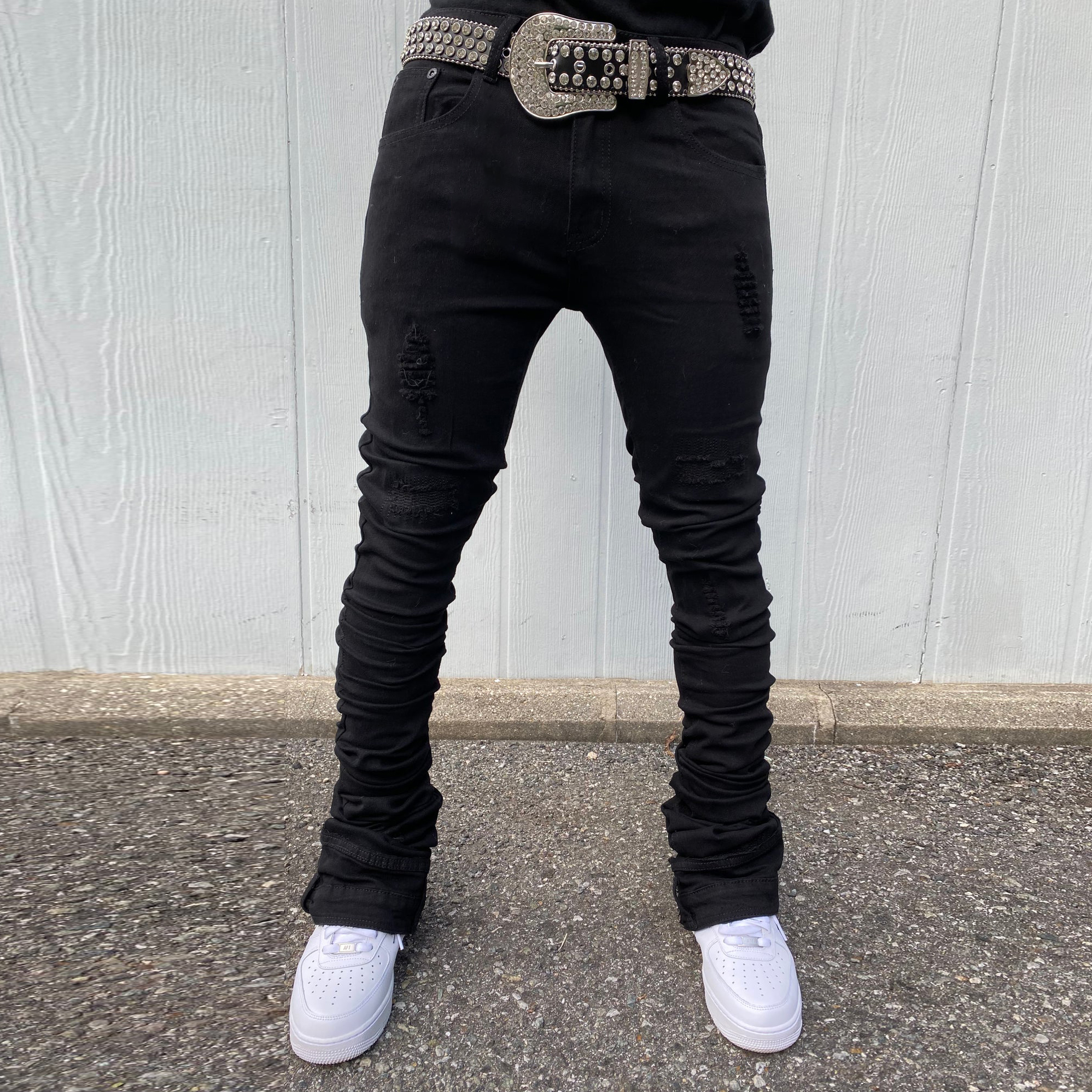 Fashion solid color casual straight hole street style trousers