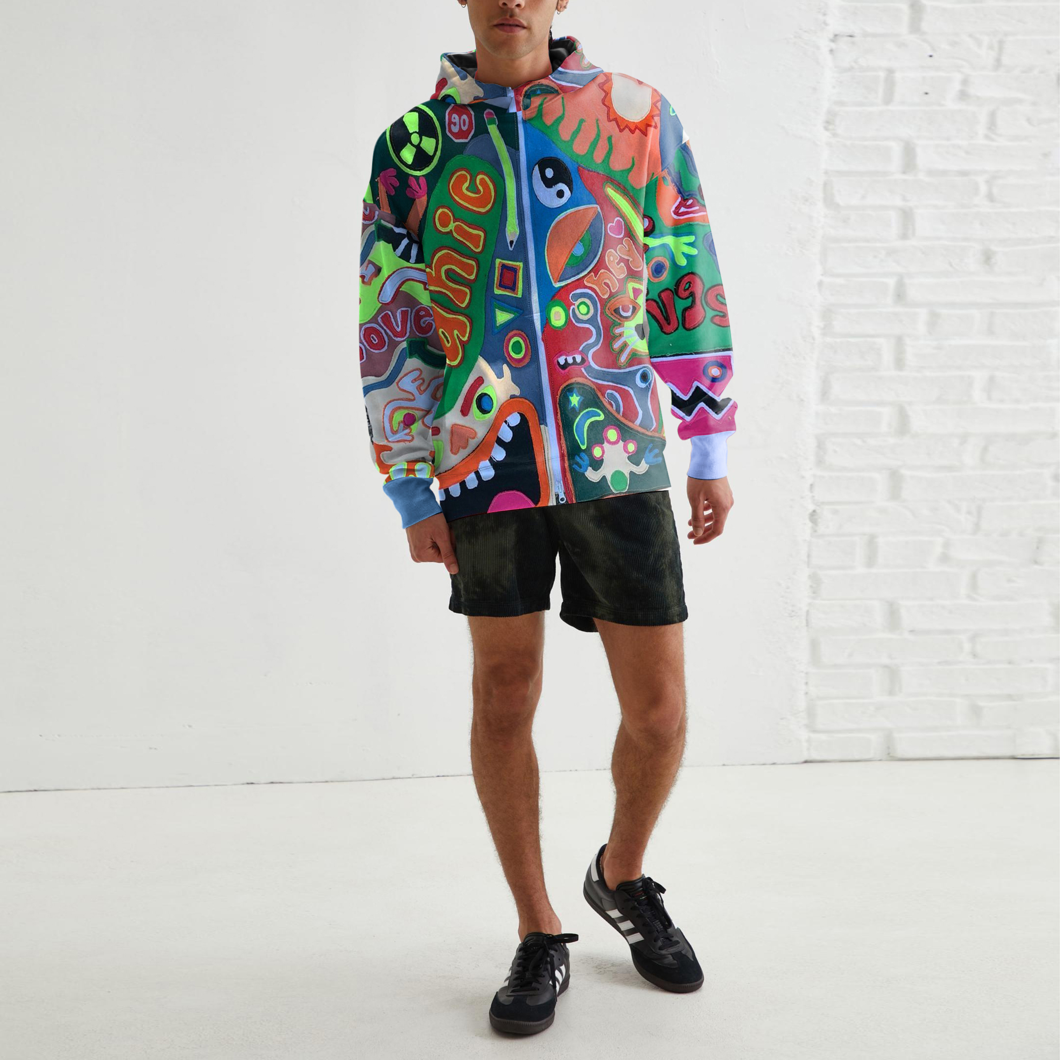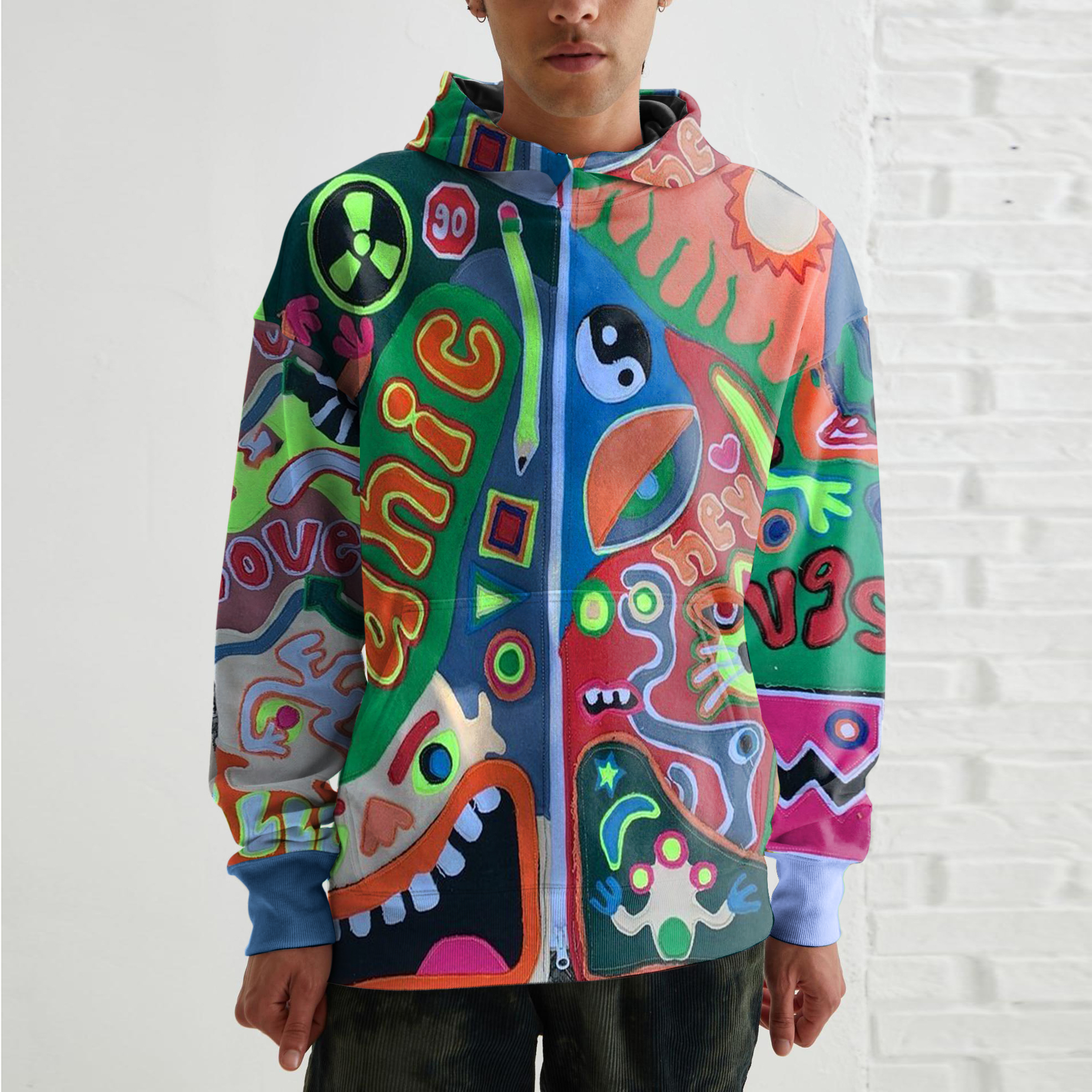 Personalized street style men's funny long-sleeved hooded sweatshirt