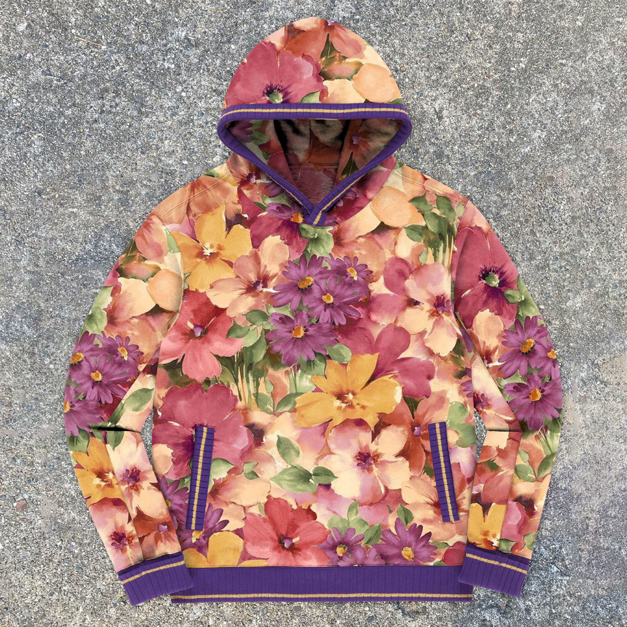 Retro Fashion Contrast Floral Street Hoodie