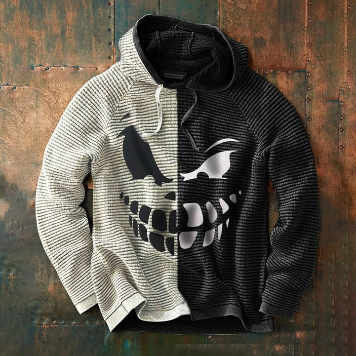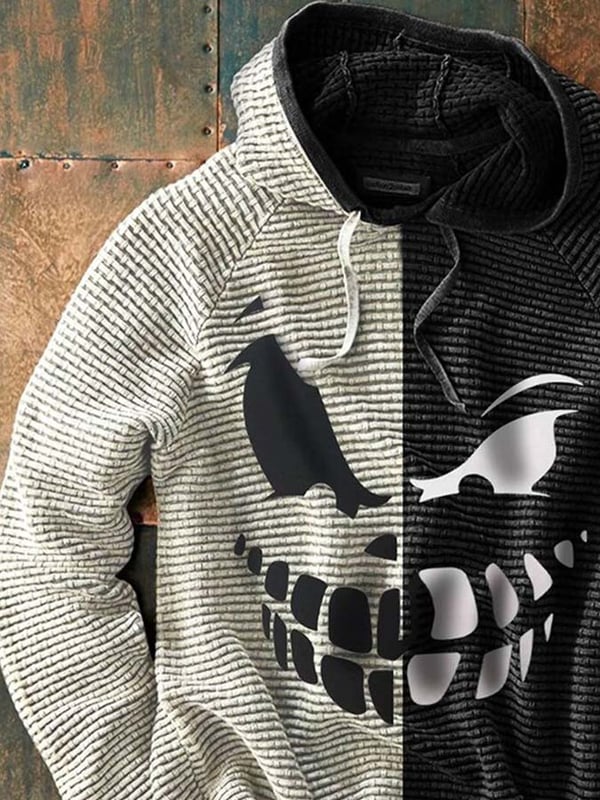 Scary Smiley Print Halloween Colorblock Long Sleeve Hoodie