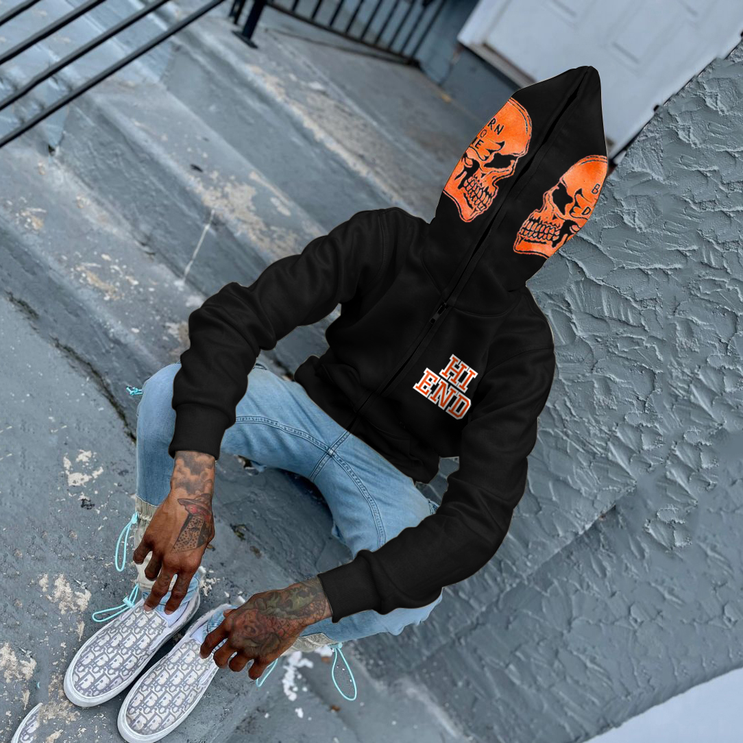 Street Style Skull Print Long Sleeve Cardigan Hoodie