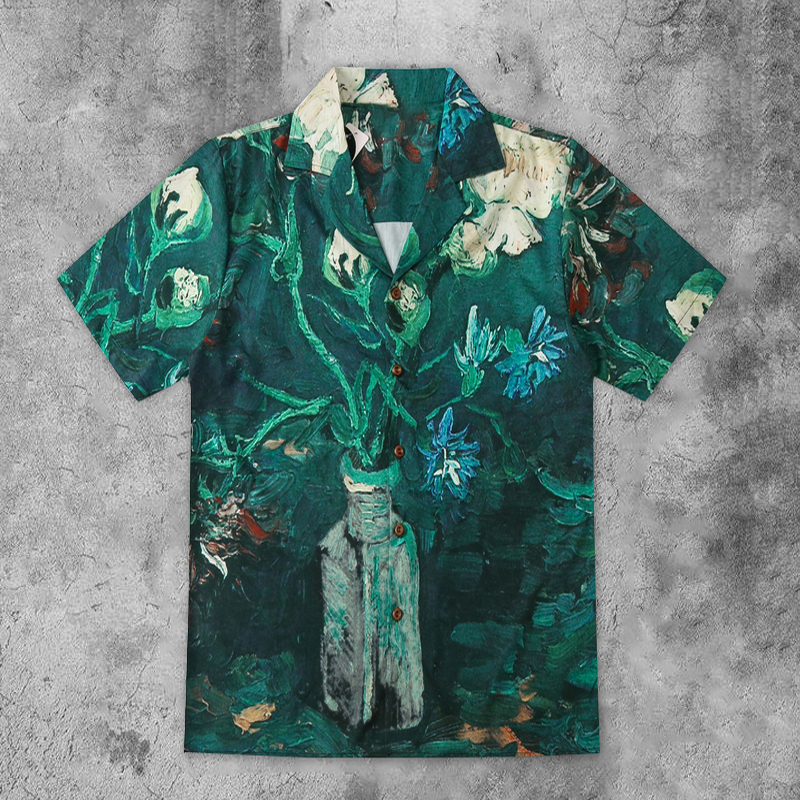 Vintage Art Print Casual Street Short Sleeve Shirt